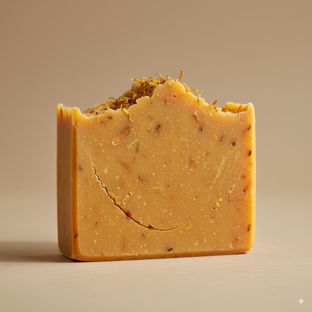 Inspirado en el poder calmante de la caléndula y la nutrición de la zanahoria, este jabón artesanal transforma tu rutina de baño en un momento de cuidado profundo. Elaborado a mano con aceites vegetales, es 100% natural, vegano y libre de químicos y fragancias sintéticas.